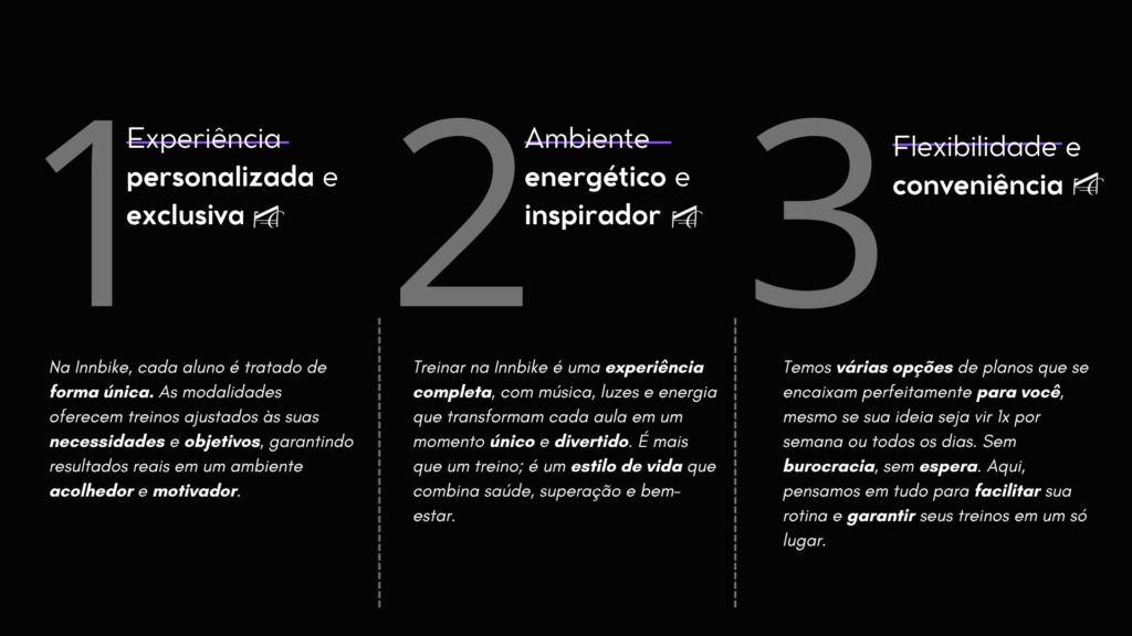Na Innbike, cada aluno é tratado de forma única. As modalidades oferecem treinos ajustados às suas necessidades e objetivos, garantindo resultados reais em um ambiente acolhedor e motivador.